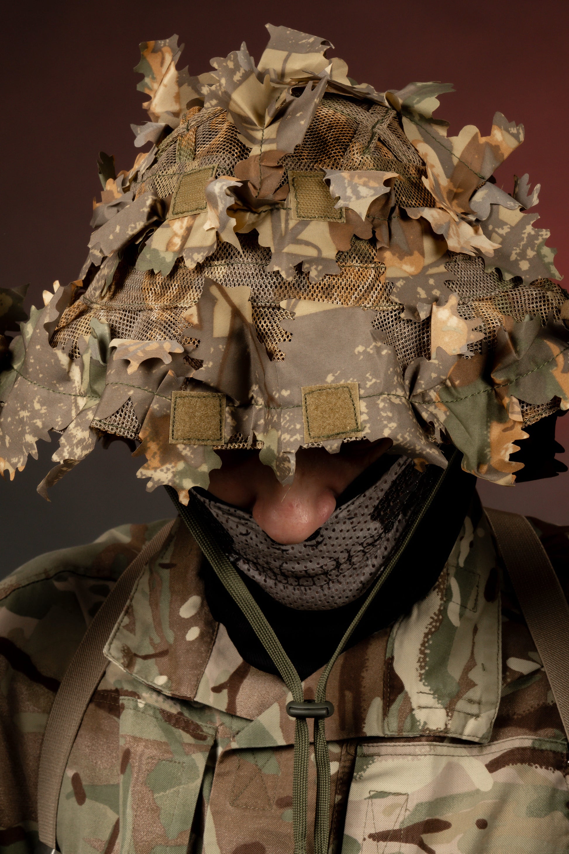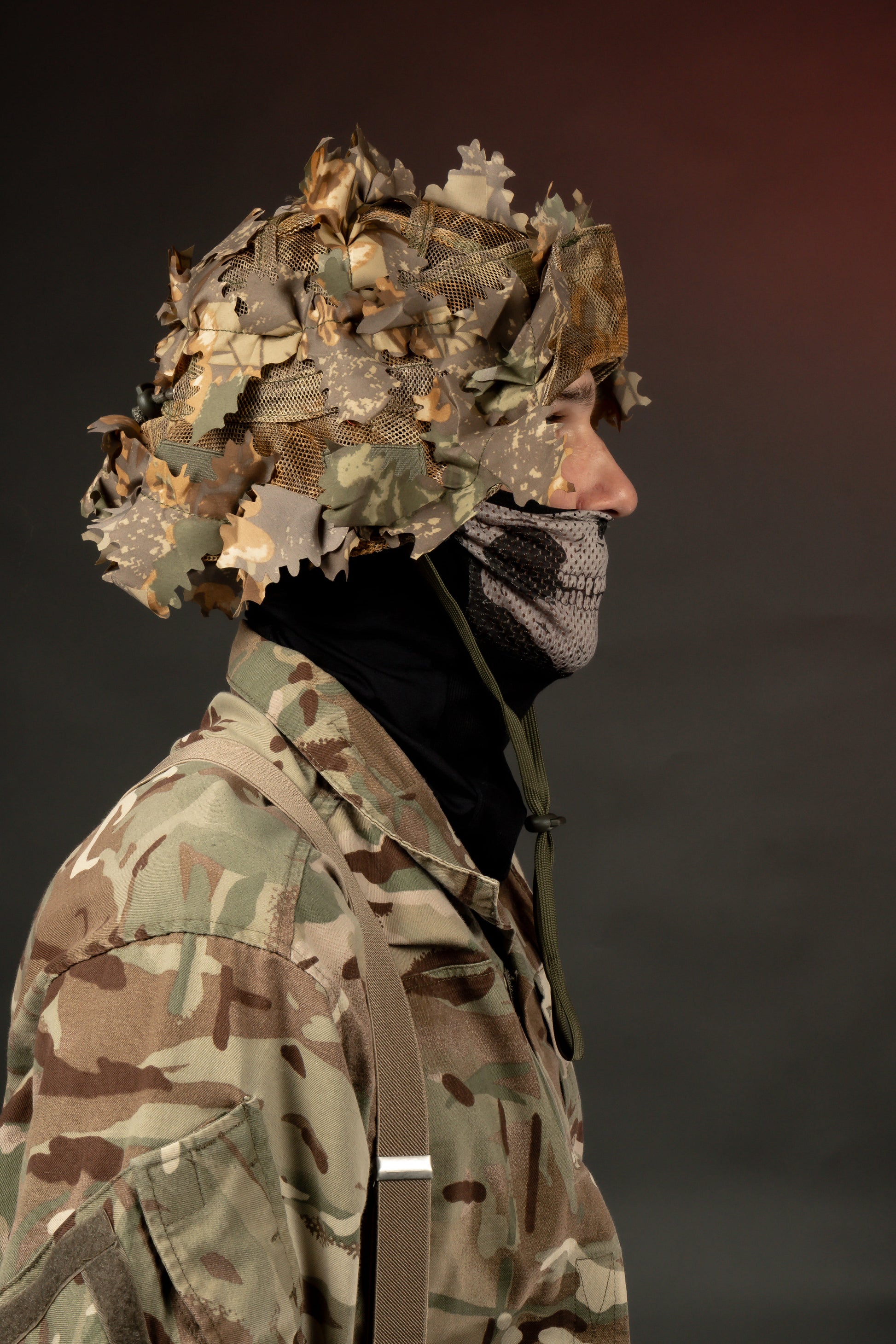 The full-brim design helps disrupt the recognizable shape of the head while providing shade and environmental protection. Integrated 3D leaf elements create depth and texture, reducing detection at close and mid ranges.
